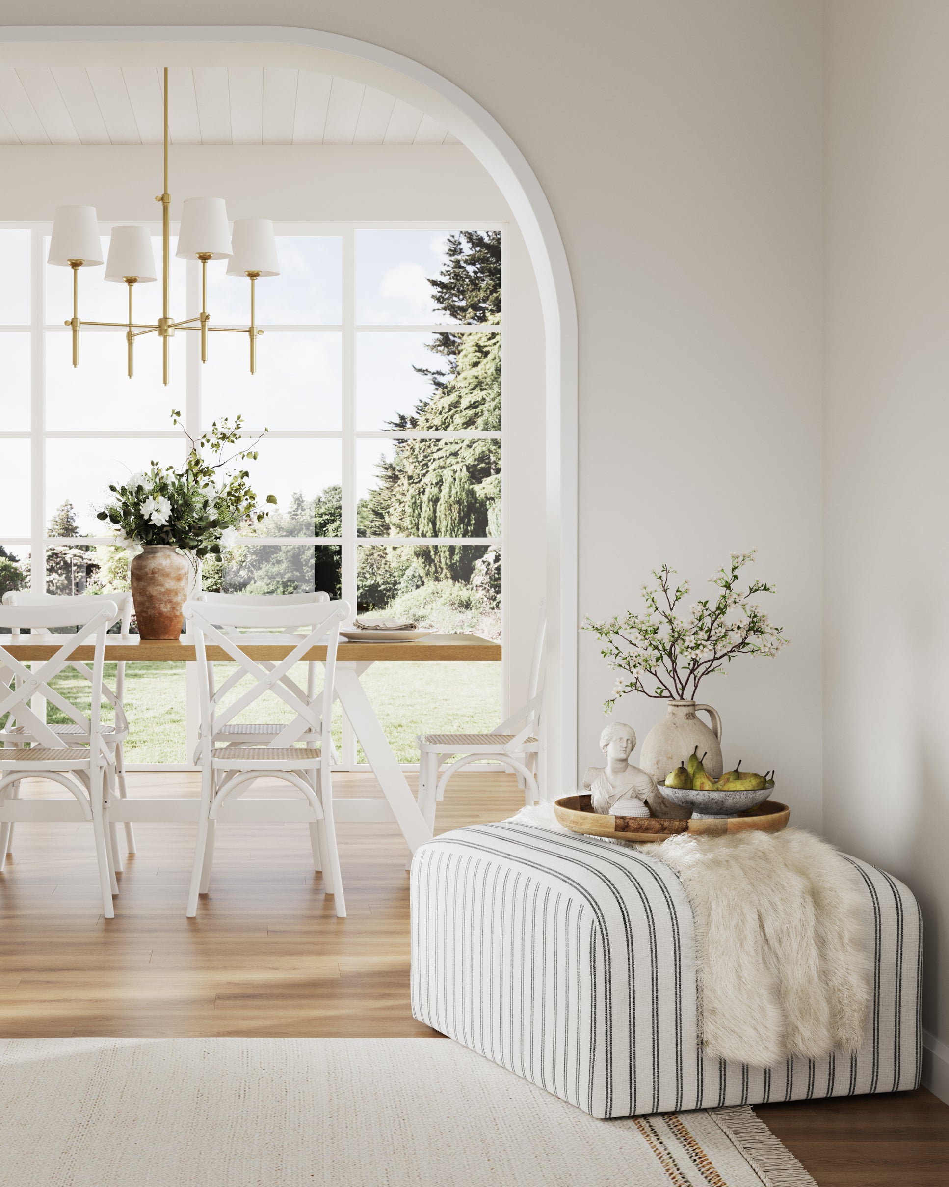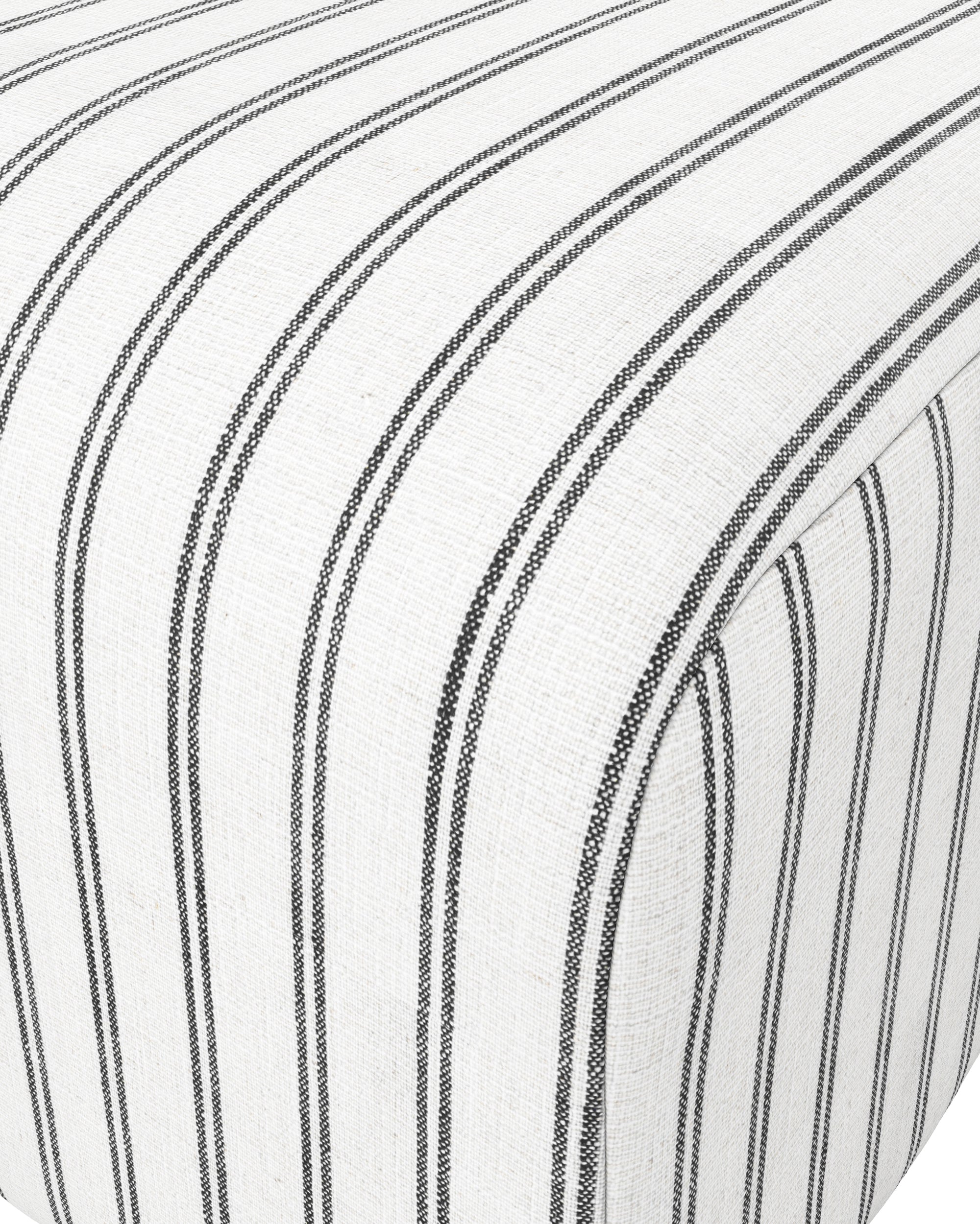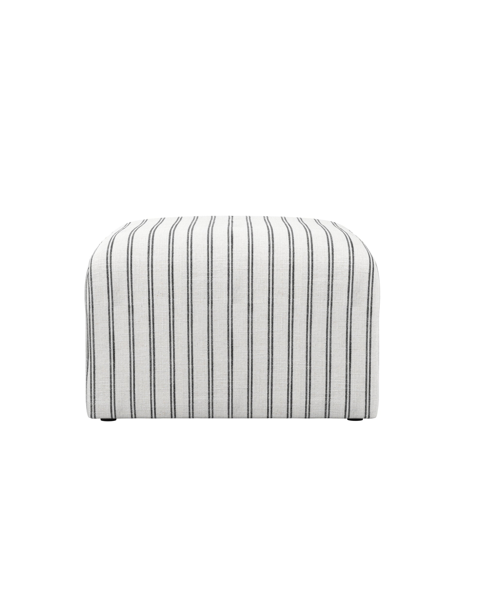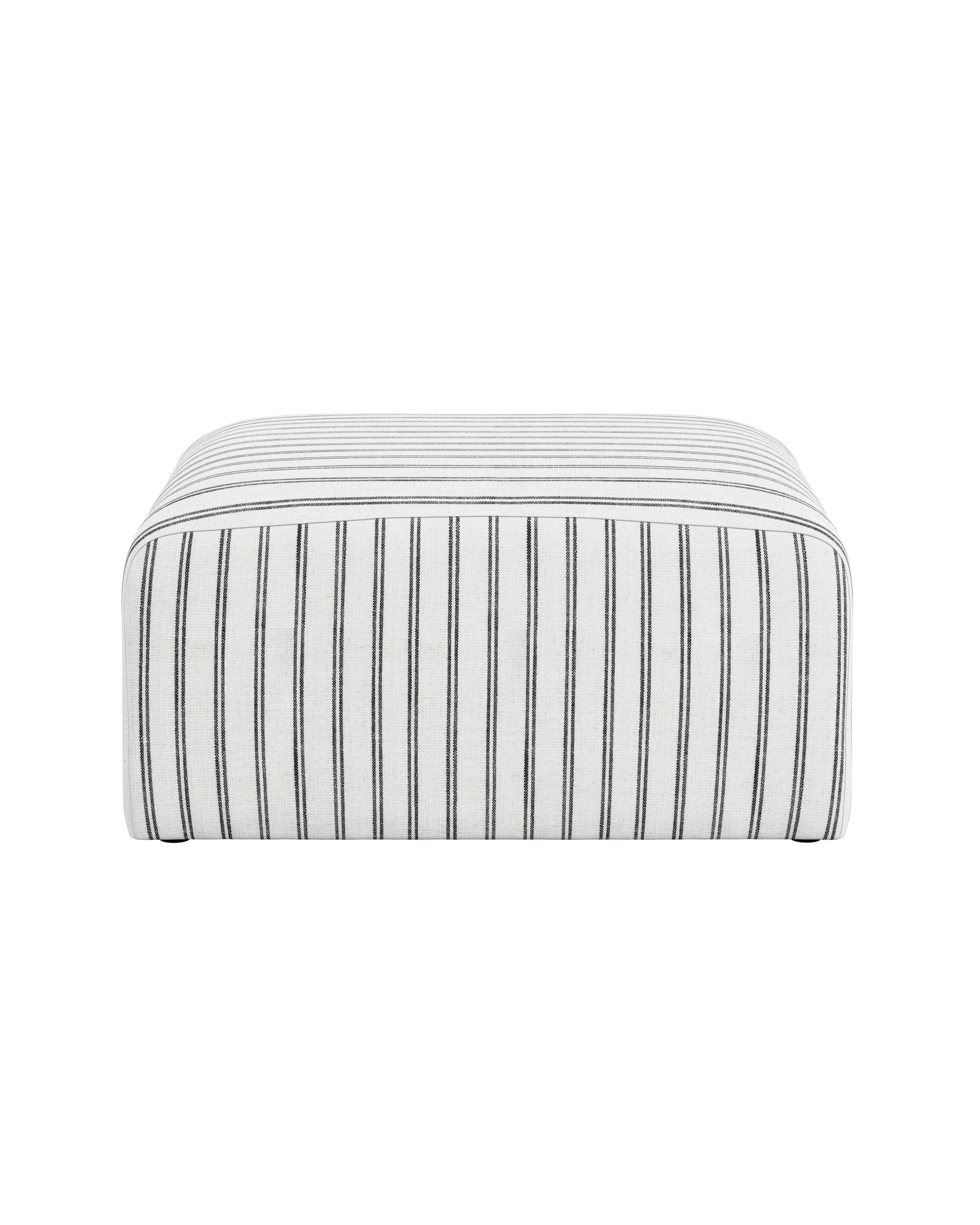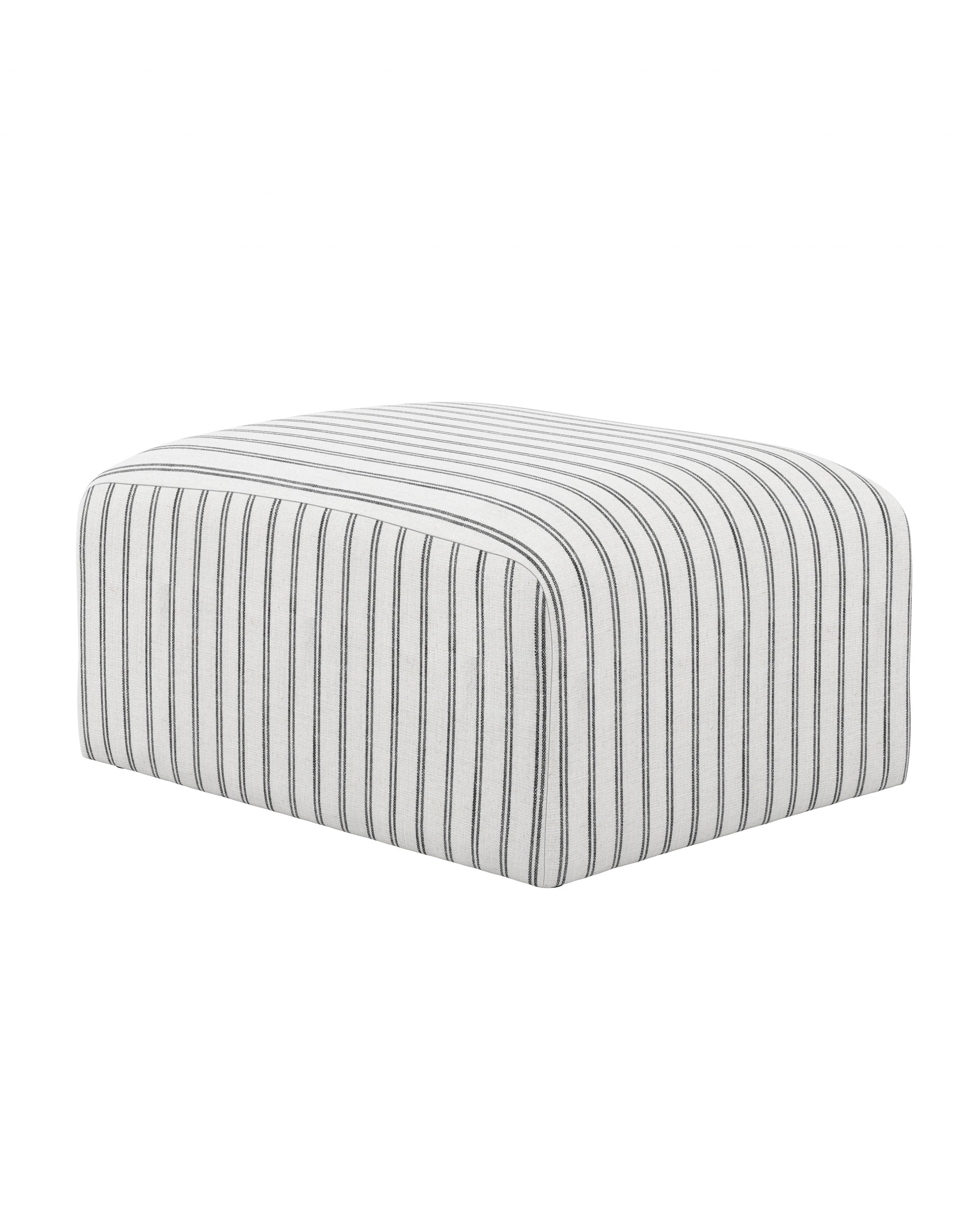 The Eastbridge pouffe features curved corners and slightly textured upholstery in striped cotton-blend fabric. It offers comfortable seating with extra filling and can be styled as an accent piece in any room.