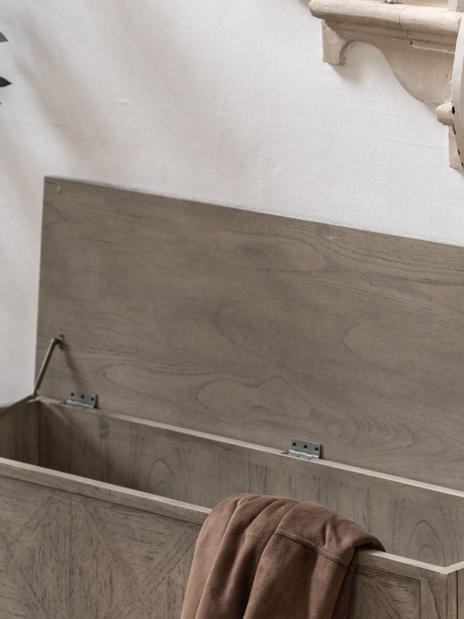 An elegant bench chest for the hallway, bedroom, or anywhere that needs stylish storage.