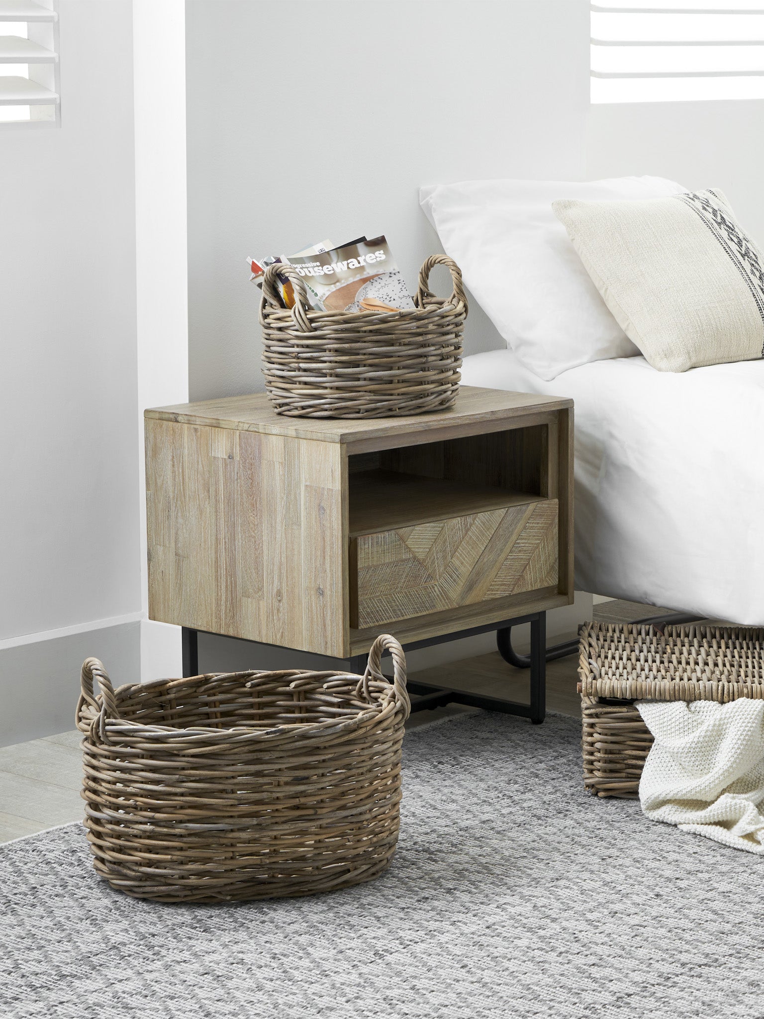 This set of 2 Natural Kubu Oval Baskets with handles are a rustic and functional home accessory. Perfect for tidying away your household bits and bobs, they are beautifully handcrafted, in a natural finish.