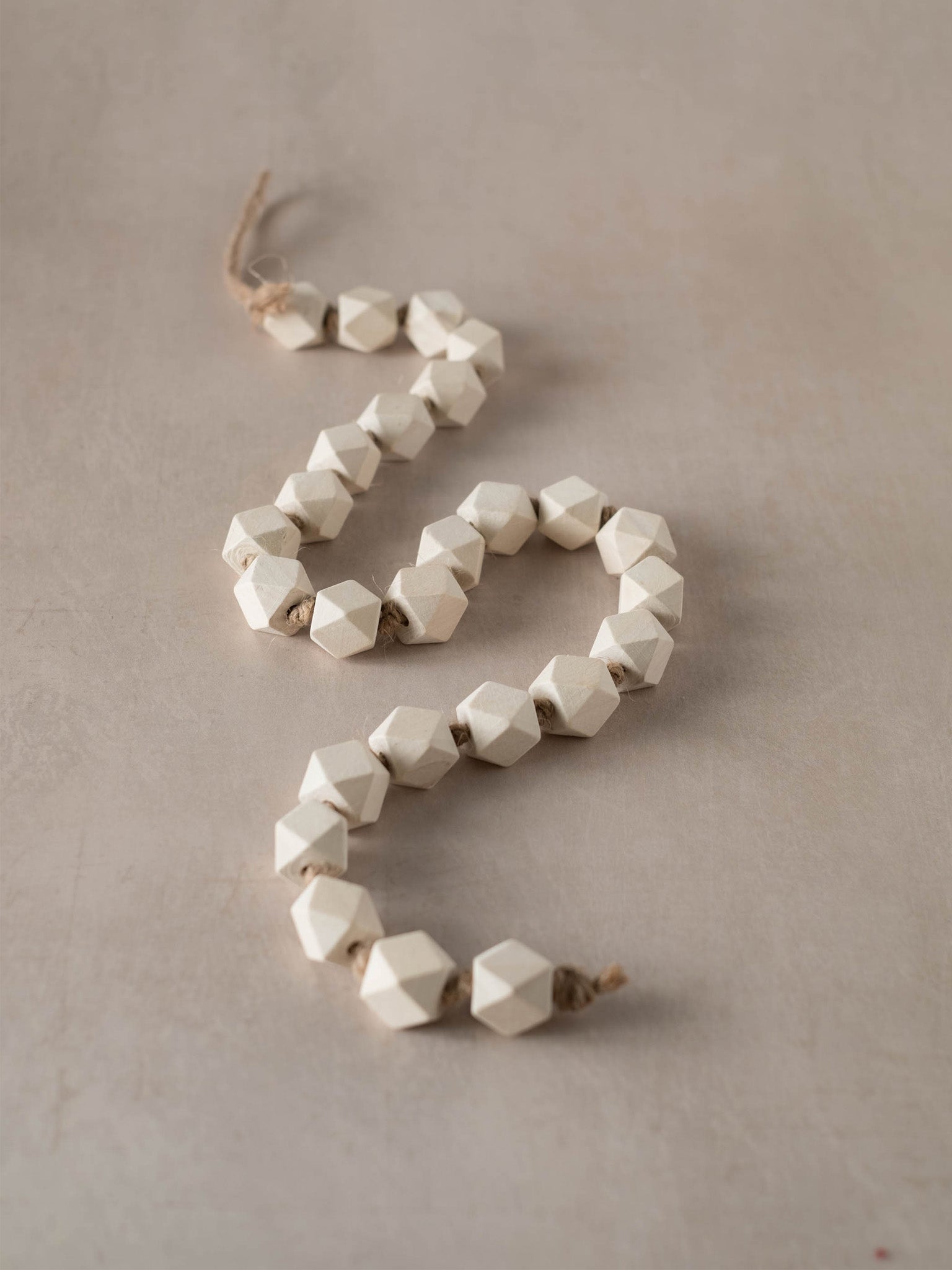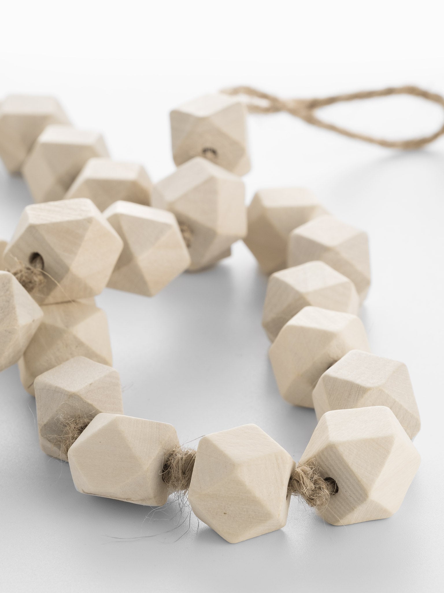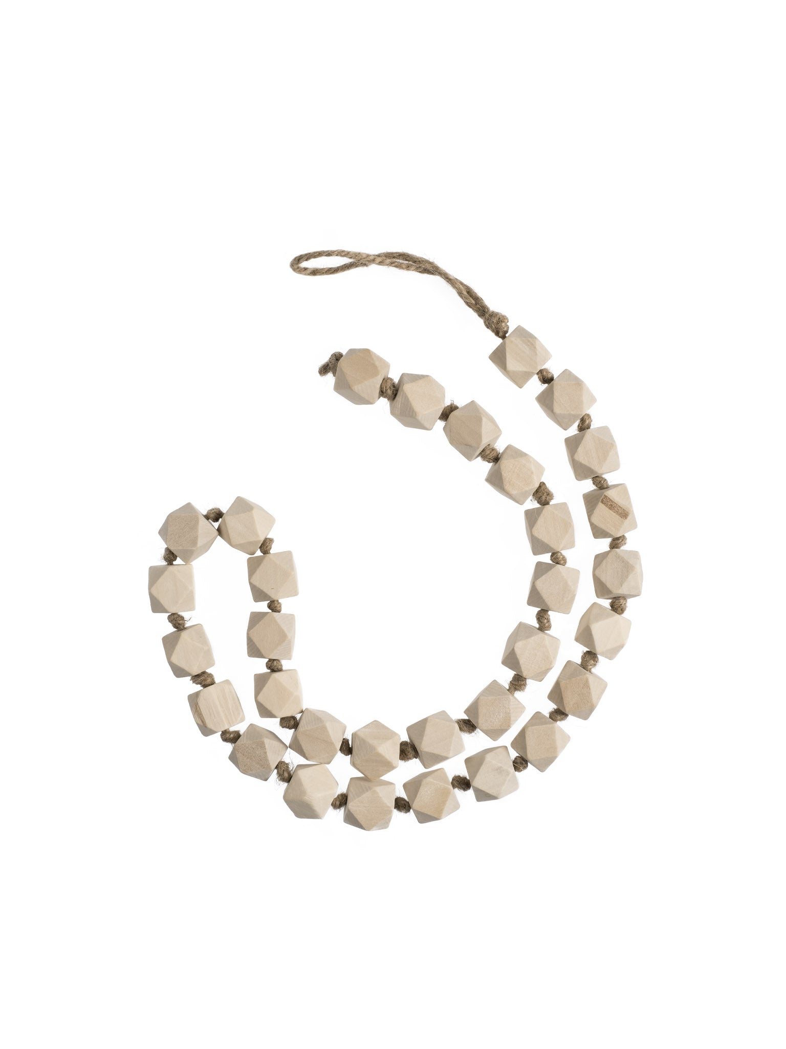 Wooden beaded garland available in two lengths, each bead is faceted in an a hexagonal shape.