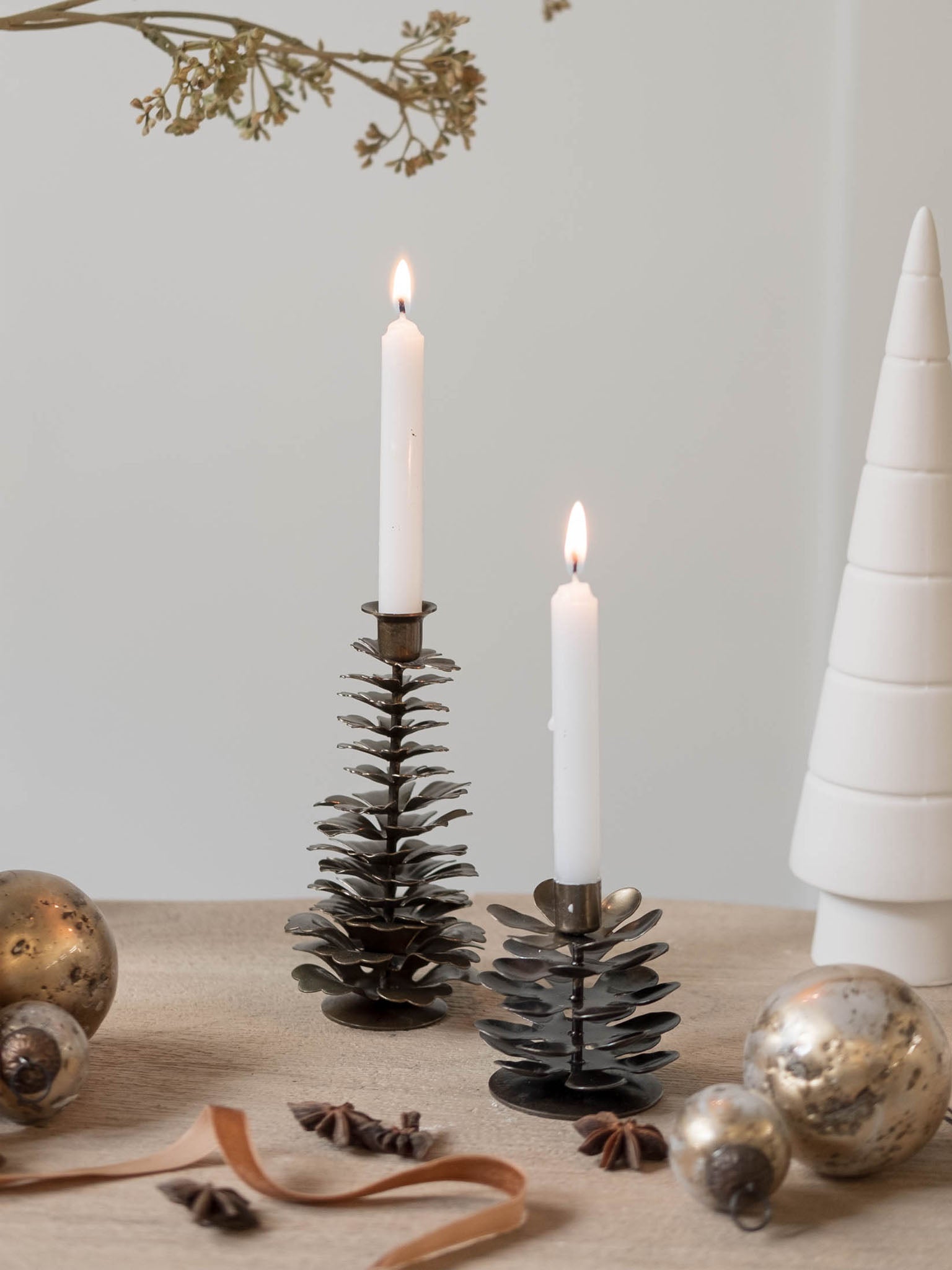 This metal large pine cone candle holder is a perfect addition to your Christmas decorations. It features intricate details and a classic design that will look great in any home. Its sturdy metal construction and timeless look make it an ideal choice for the festive season and beyond.