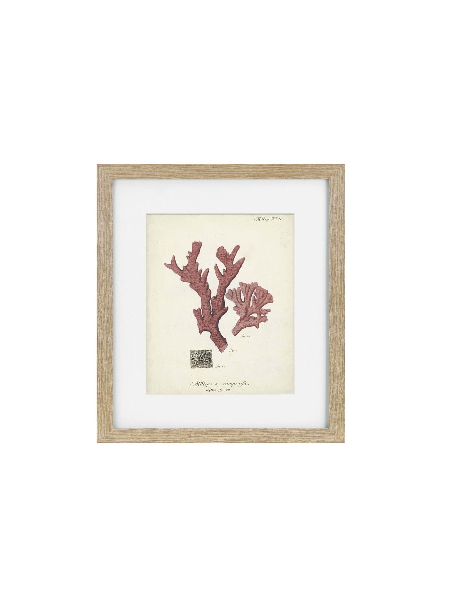 This elegant Antique Pink Coral Framed Art Print I features a vintage depiction of pink coral, expertly preserved within a narrow oak frame and complemented by a white mount.