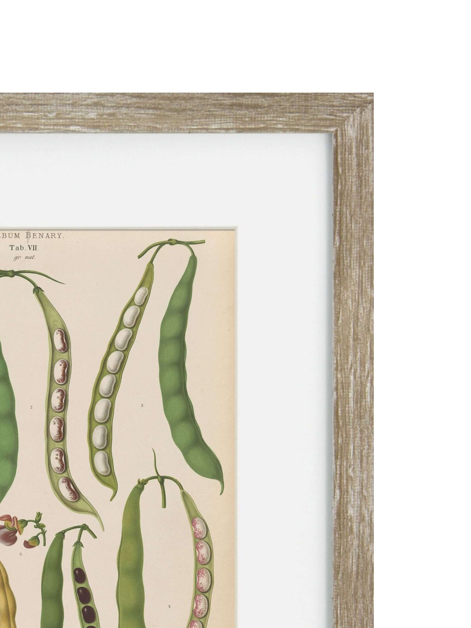 Elevate your kitchen or dining space with this charming Vintage Veg III Framed Art Print, a timeless celebration of culinary heritage. The piece features a beautifully rendered vintage illustration of beans, capturing the artisanal quality of classic botanical and produce artwork. Housed in a refined narrow brown frame with a crisp white mount, the design strikes an elegant balance between rustic charm and contemporary sophistication.