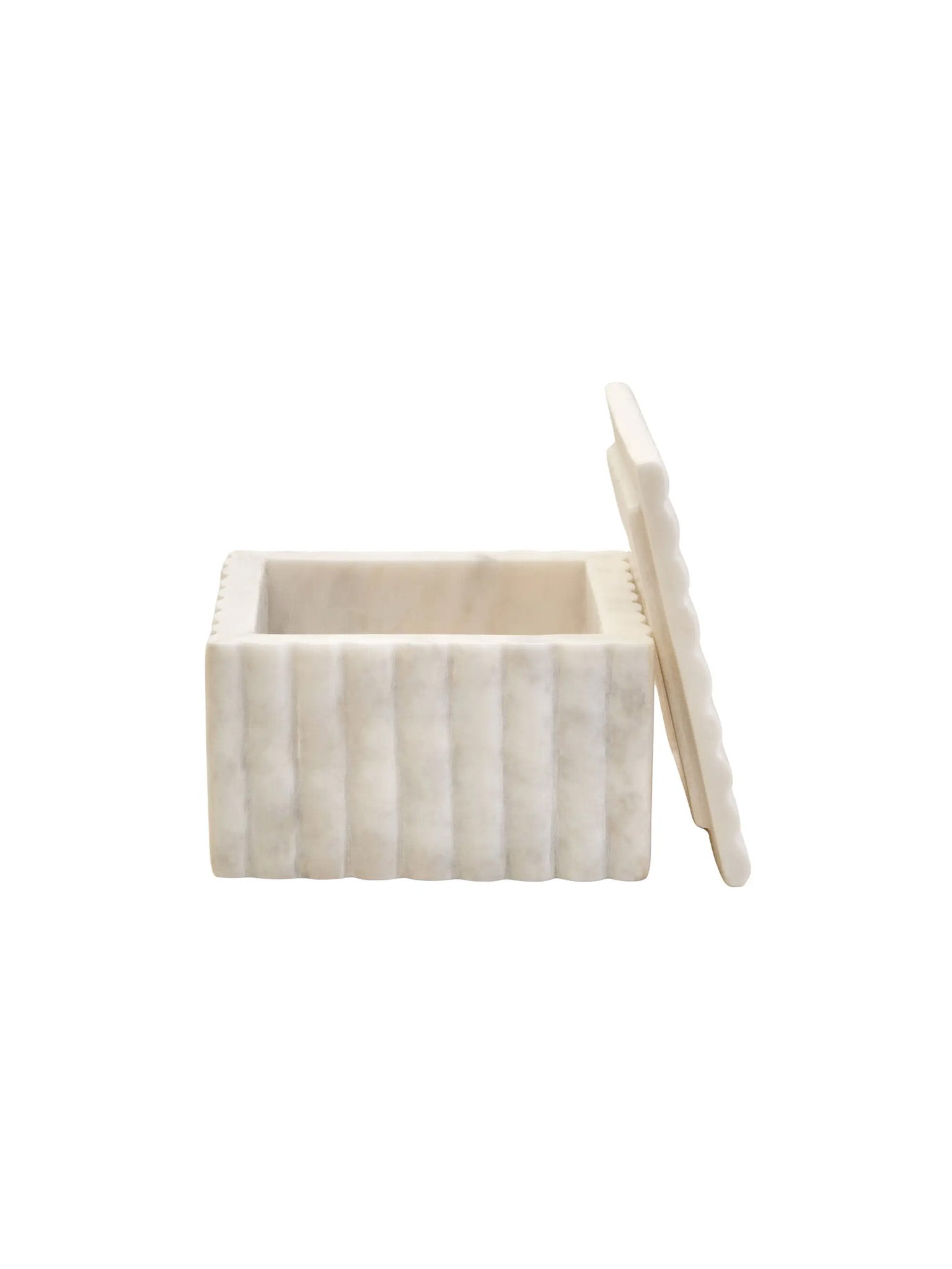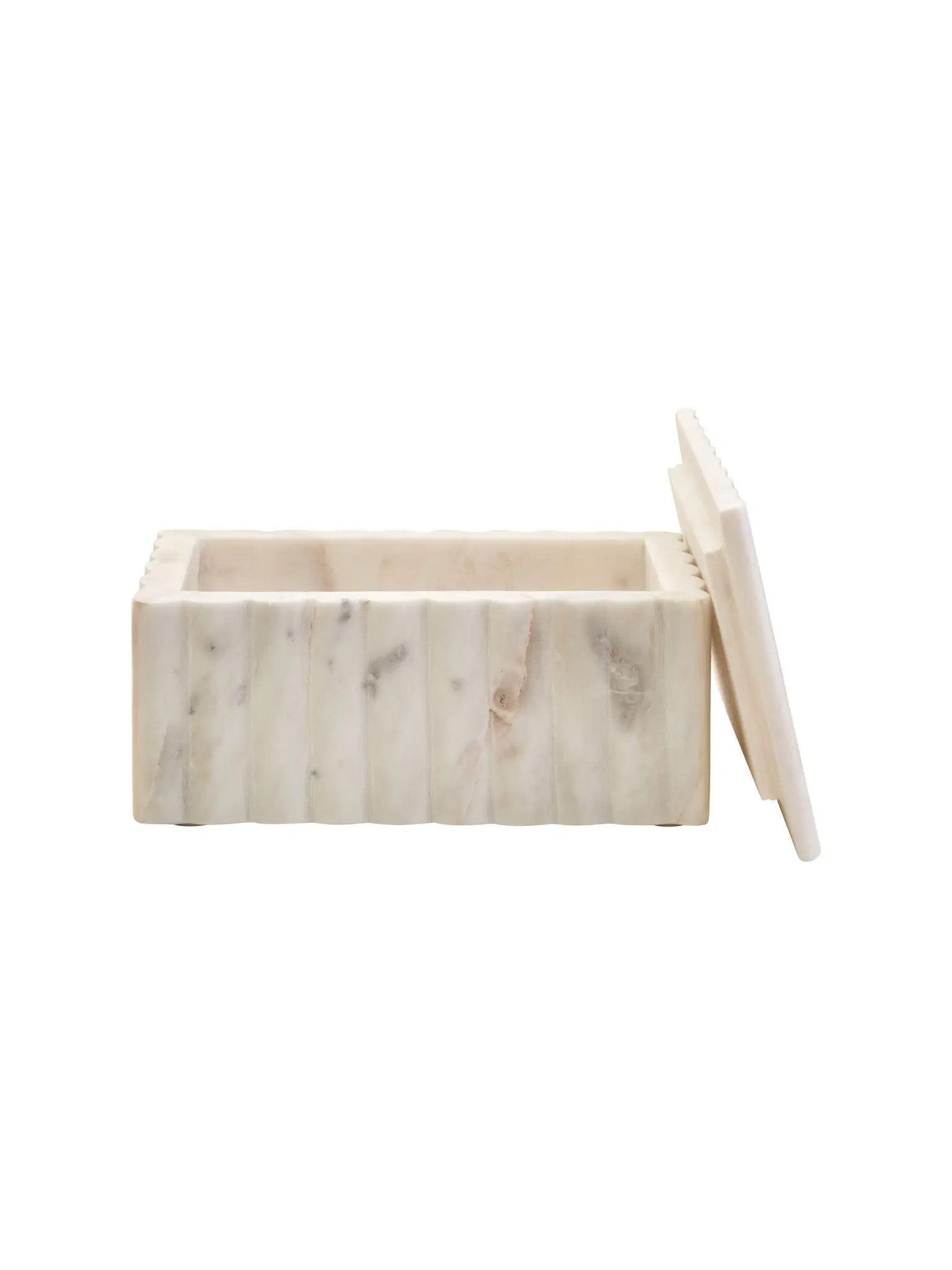 Store your beauty essentials or use it as a decorative accent, this marble box adds aesthetic appeal to any home decor. Its fluted pattern adds a touch of elegance, making it a timeless piece for your home.  Available in square or rectangular.
