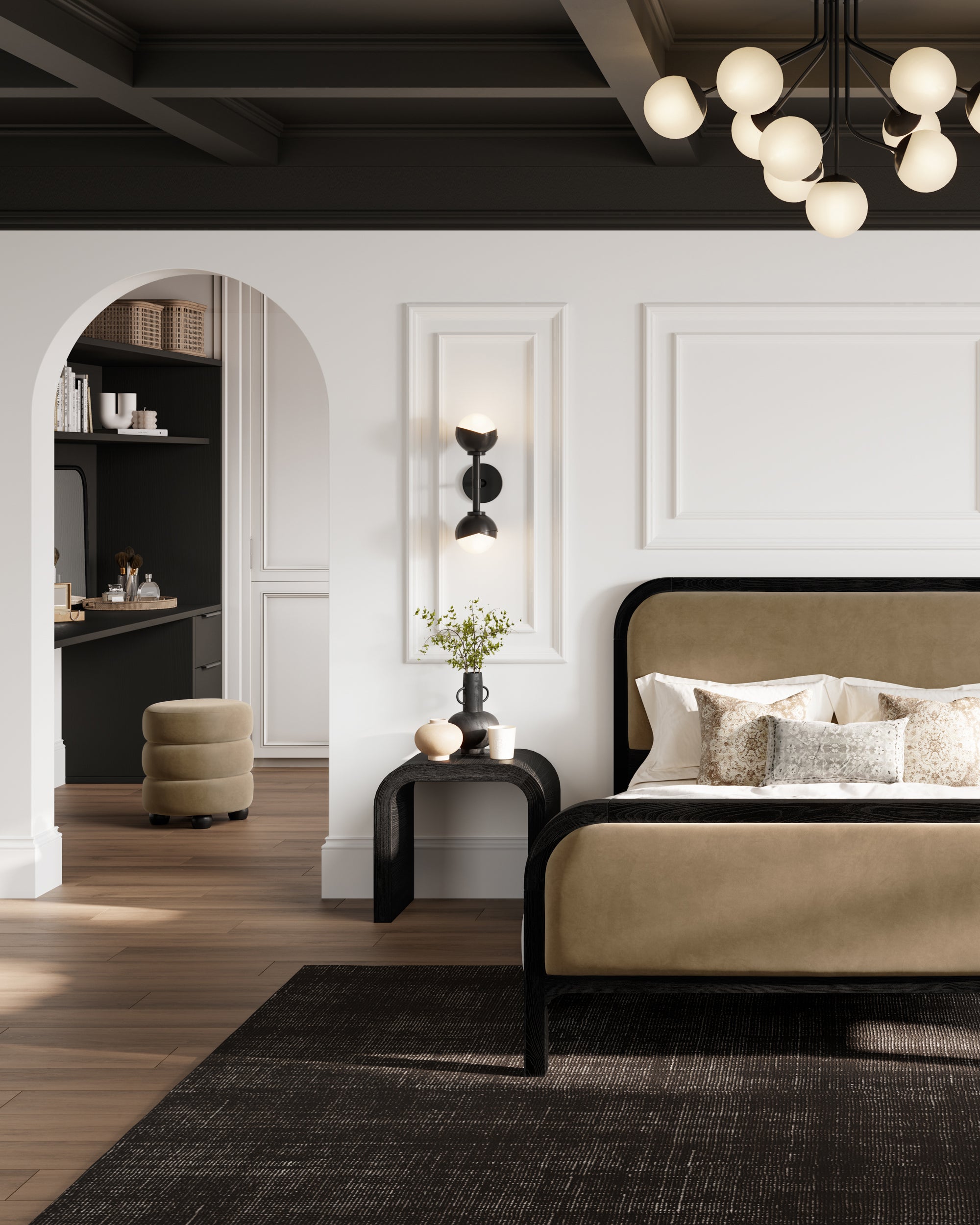 Presenting the Trudi pouffe, in soft Mole velvet with round black pine feet it is crafted to bring both elegance and comfort to any room. With its gently curved lines and soft, inviting silhouette, the Emi pouffe is an ideal addition to your living room, bedroom, or lounge area.