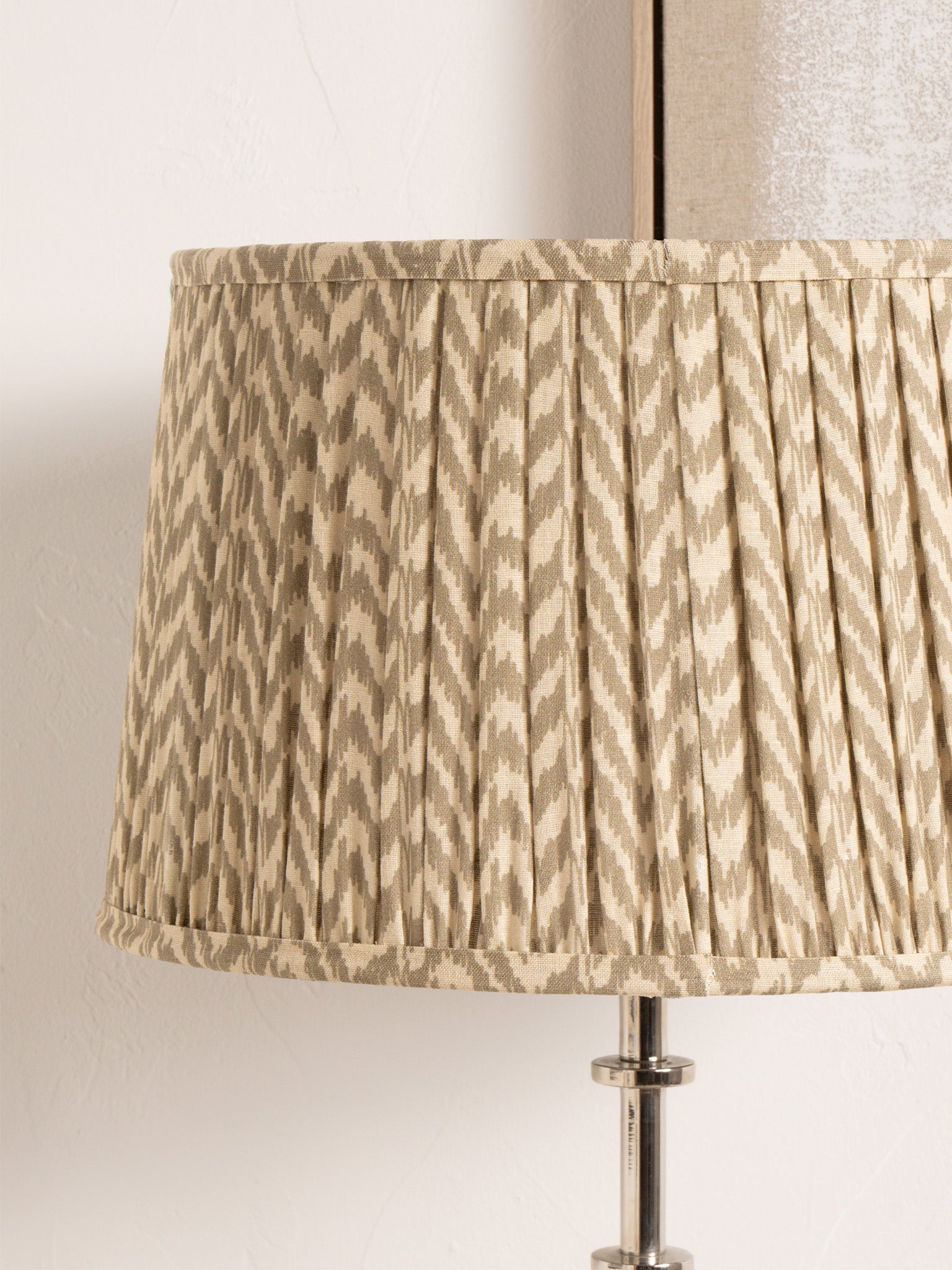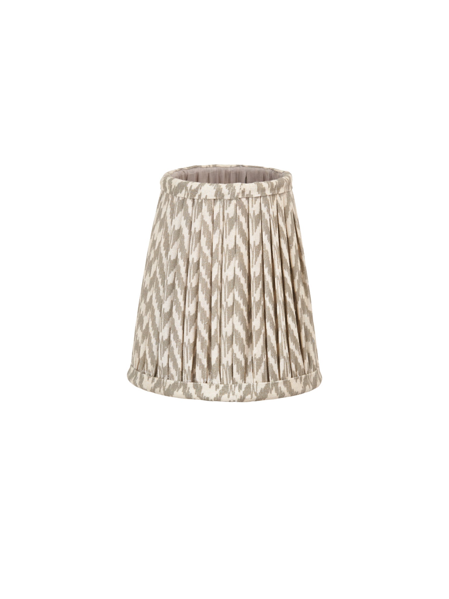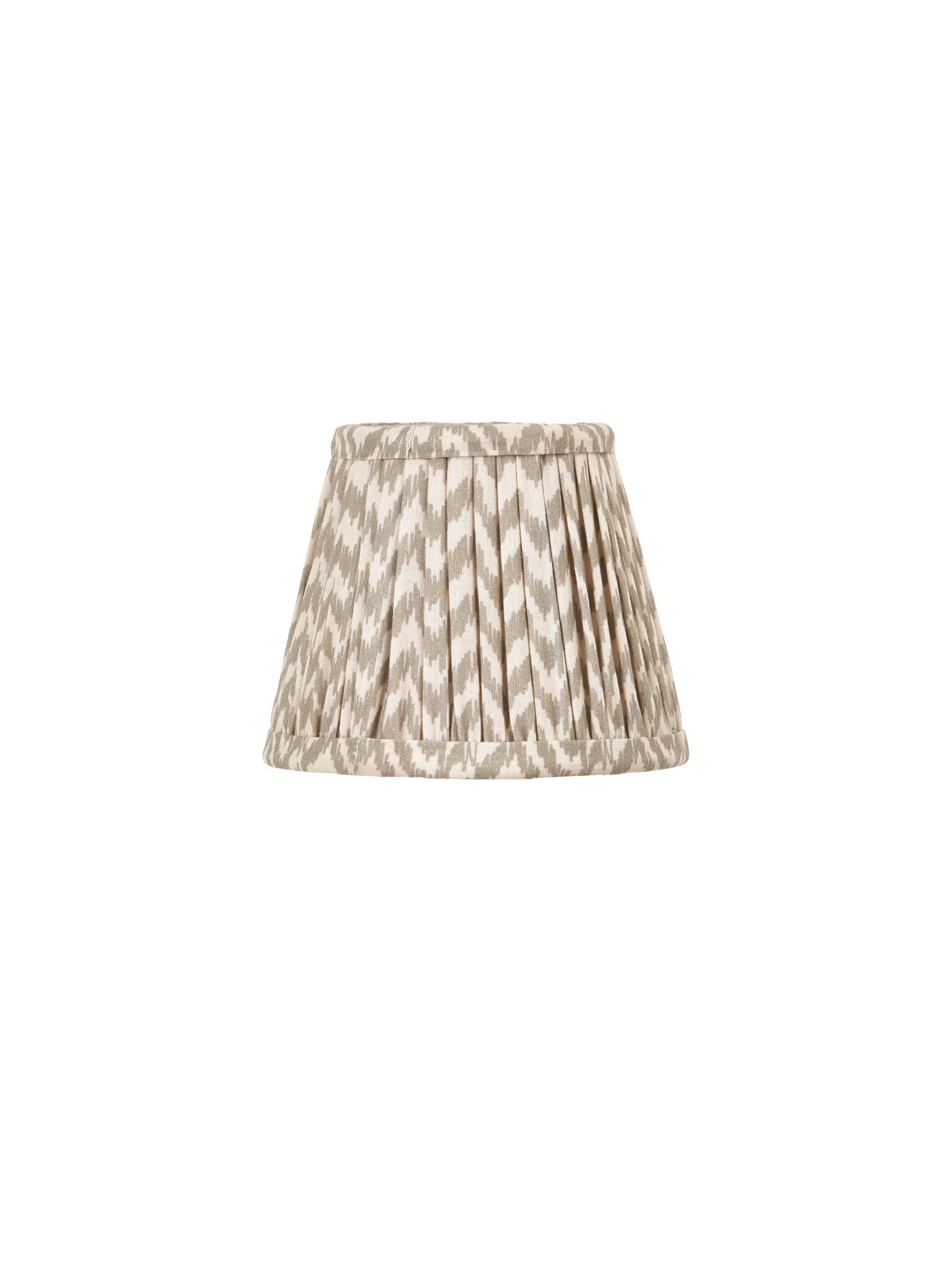 This tapered Salzburg Ikat Pleated Shade in taupe is the perfect addition to any modern or classic space. The hand mushroom pleats and tapered geo print add a soft edge to the design, while the natural color adds a touch of versatility.