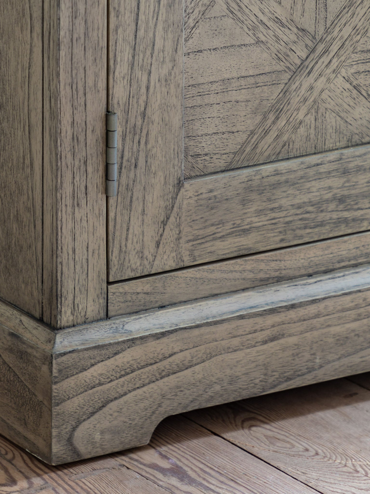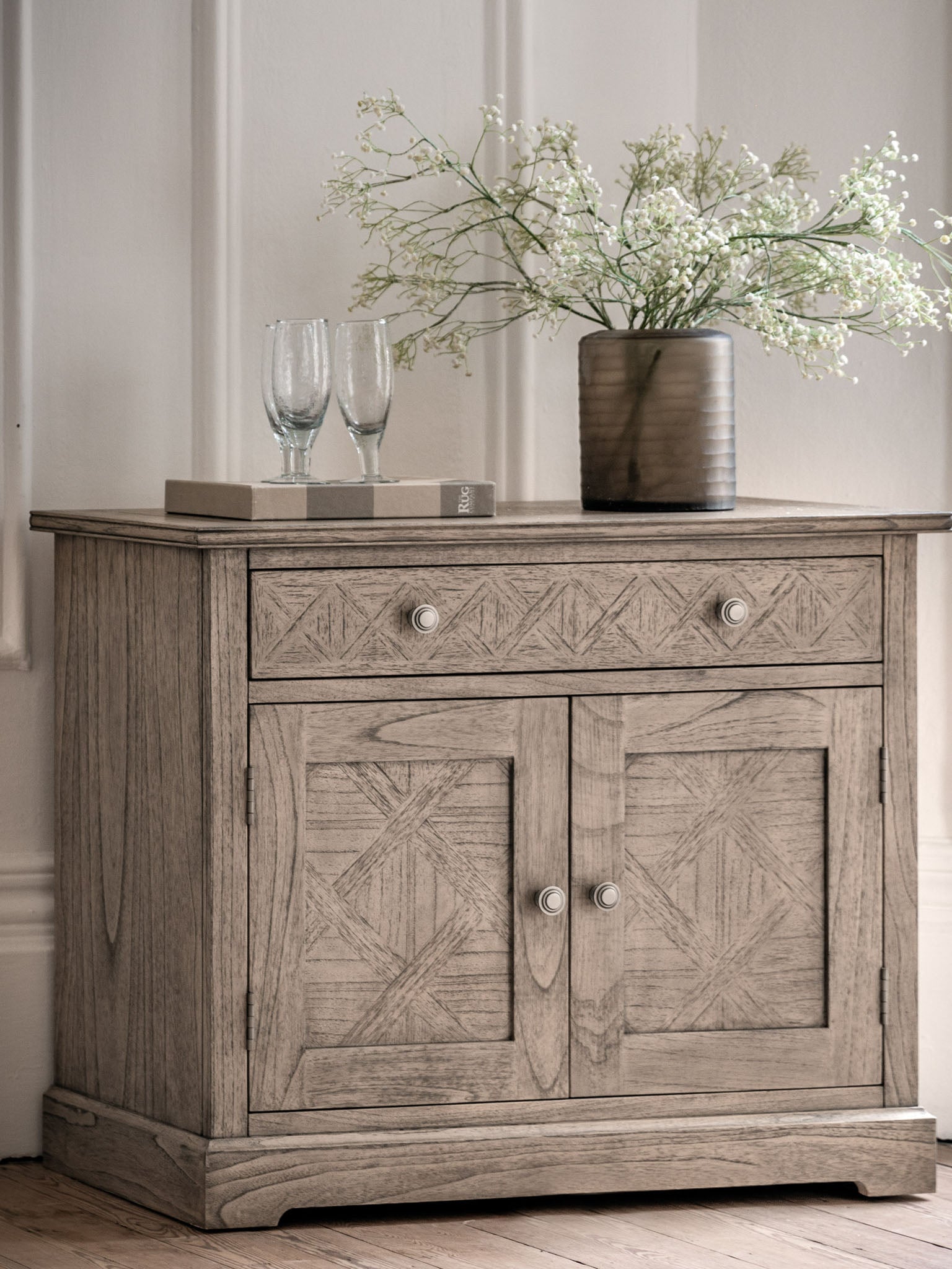 Achieve versatile style and practical storage with this 2 door sideboard from our Savanne collection. Crafted from Mindy wood with a stunning parquet-style design, its lightly brushed finish recreates a natural ageing effect.