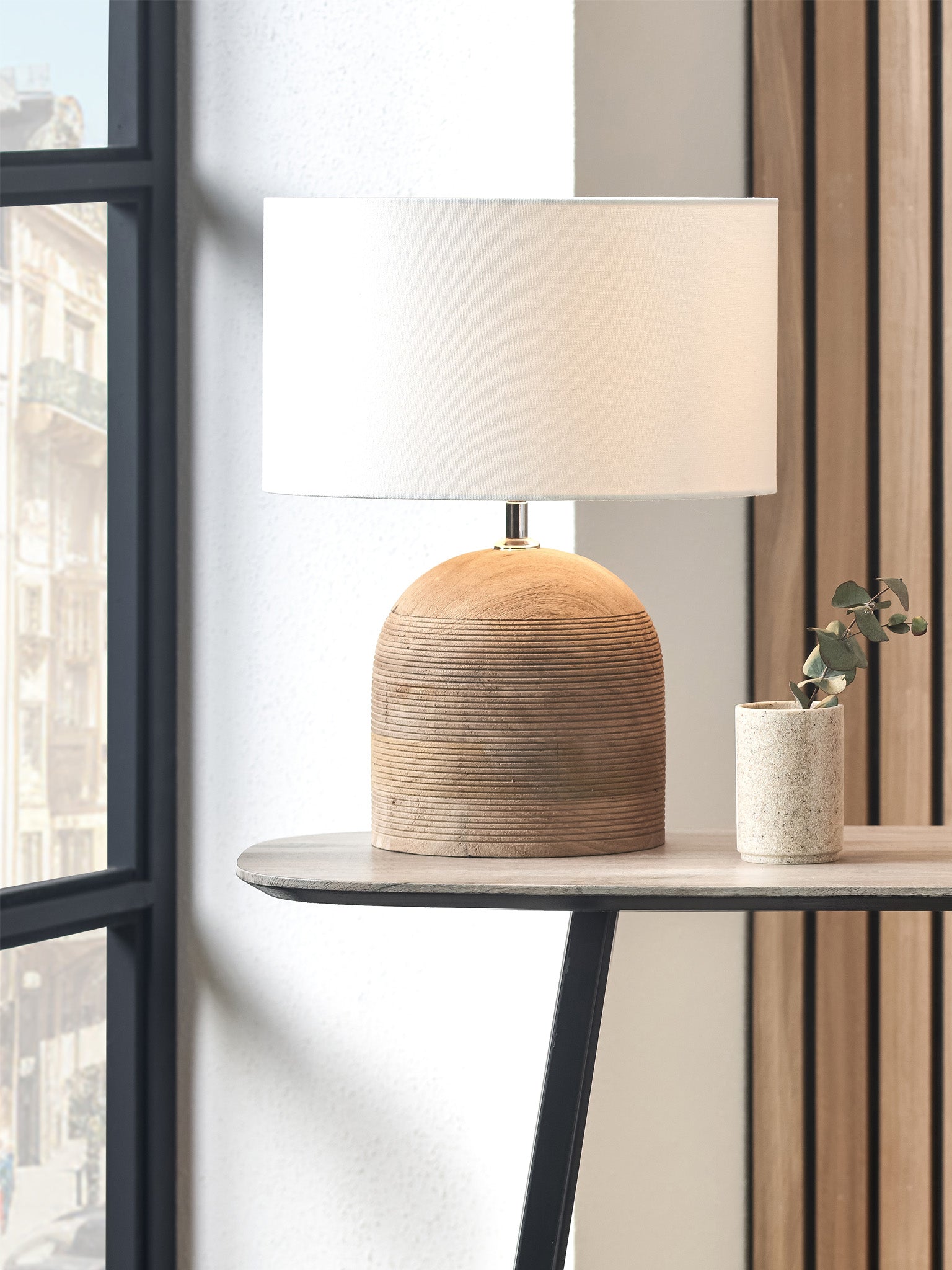 Jannu Wooden Grooved Table Lamp
