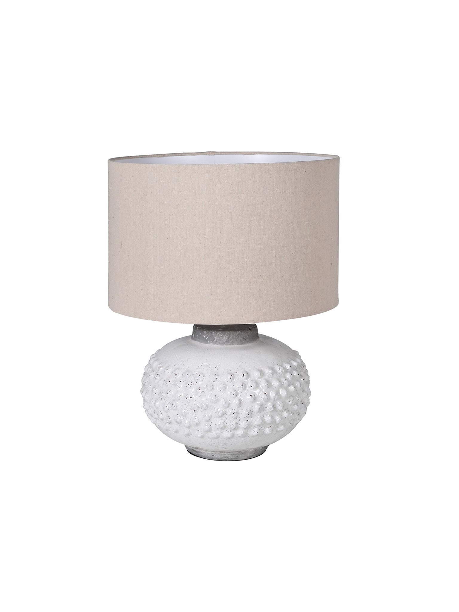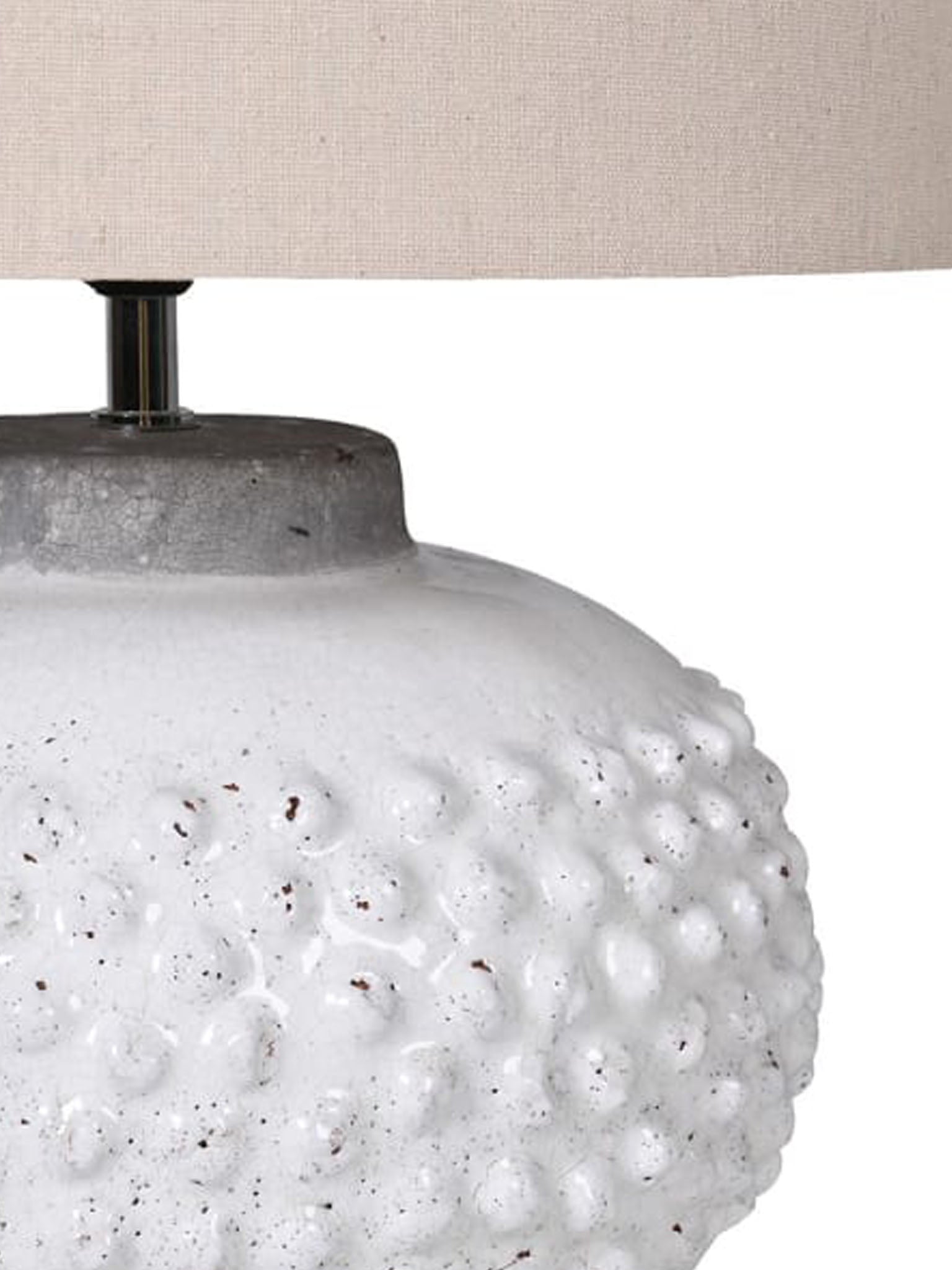 Expertly crafted from rustic ceramic, the Martha Table Lamp adds a touch of sophistication to any room. With a unique dimple design, this lamp brings a subtle texture to your space. The cream cylinder shade provides a soft, warm glow, making it a perfect addition to your home decor.