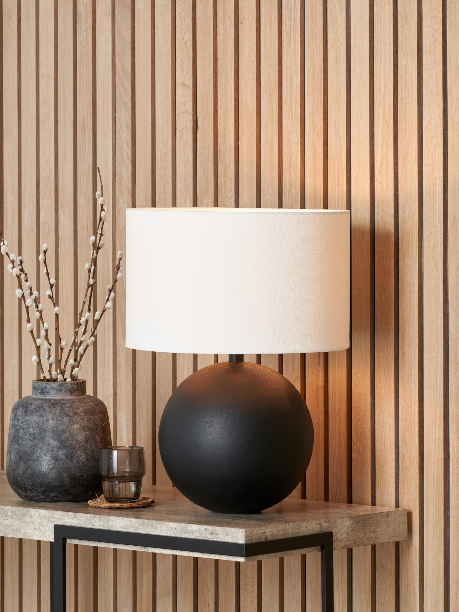 The Montague Black Ball Table Lamp combines a sleek metal finish with a striking spherical design, making it the perfect addition to any modern space.