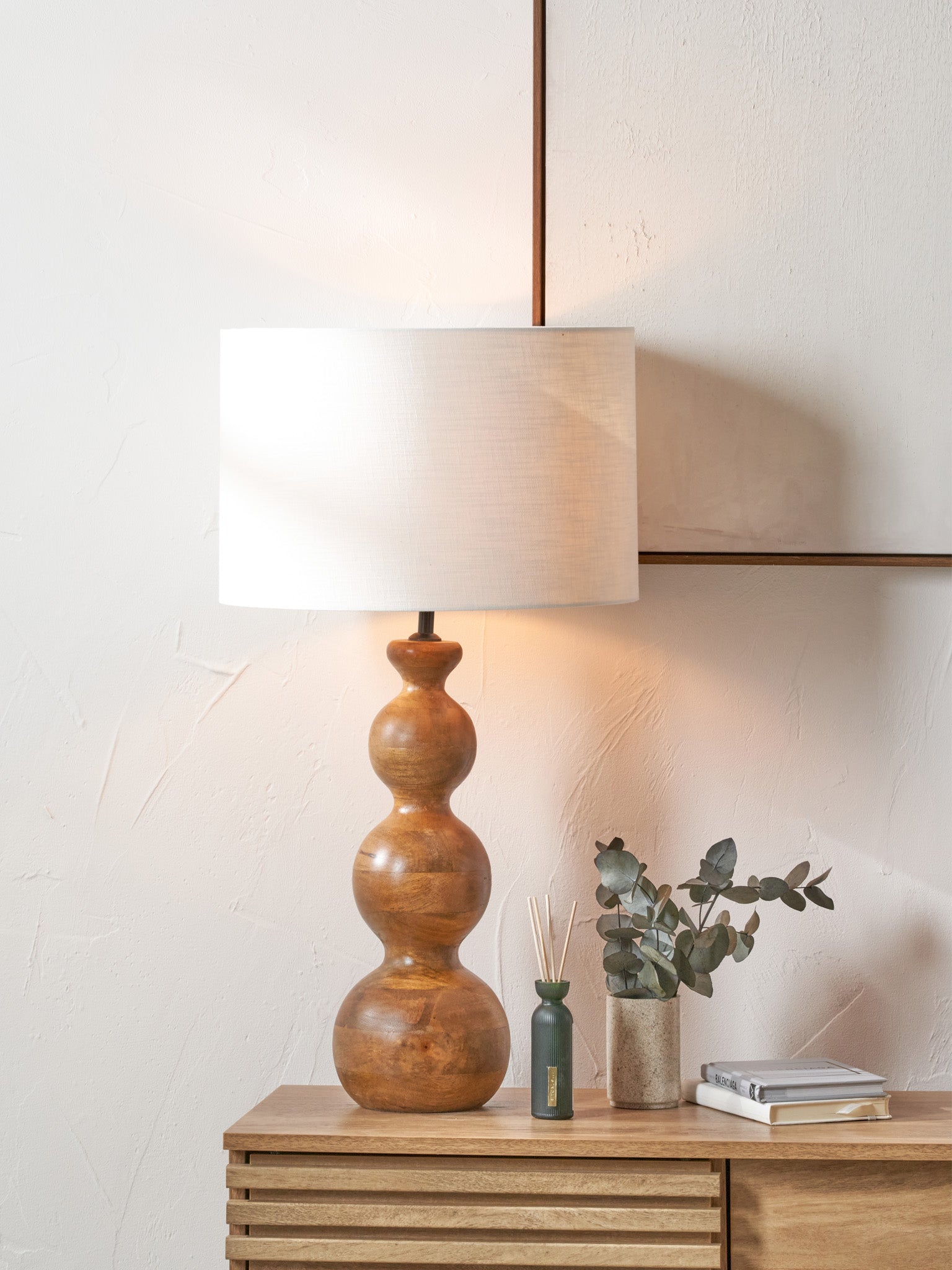 Crafted in India with a modern aesthetic, the Oria 3 Ball Design Mango Wood table lamp base features a brown oiled finish, making it an ideal choice for adding a stylish ambience to your space.