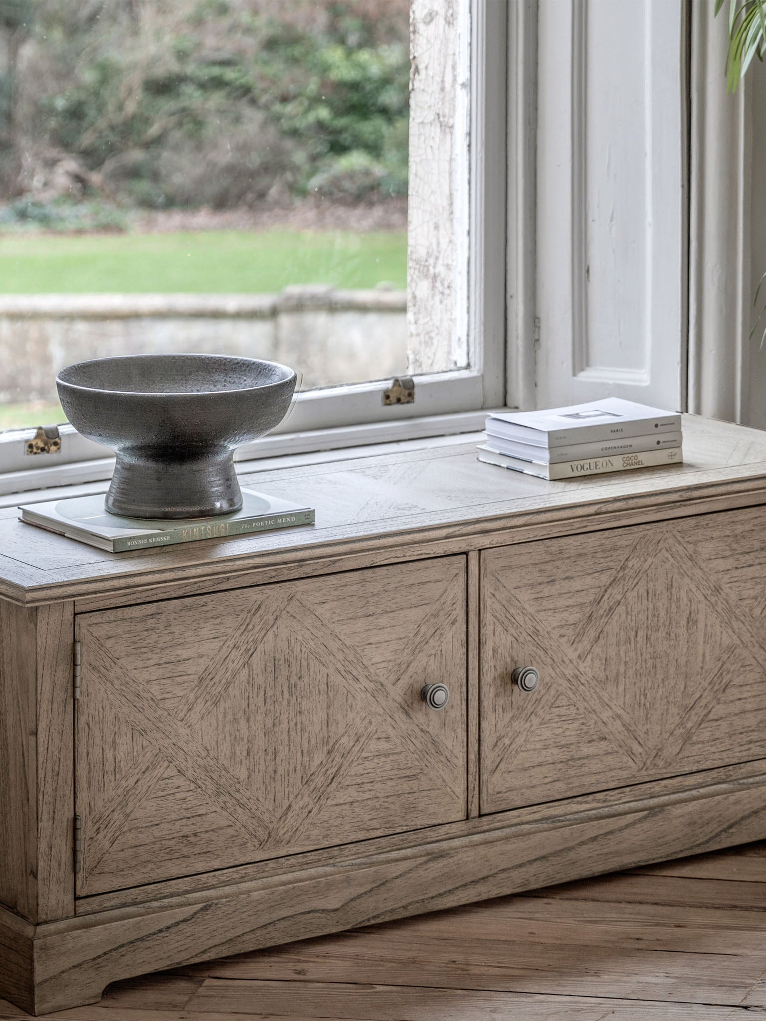 This 2 door media unit offers a practical storage solution, and is ideal as a media unit or for general use. The doors and top feature the signature parquet-style design.