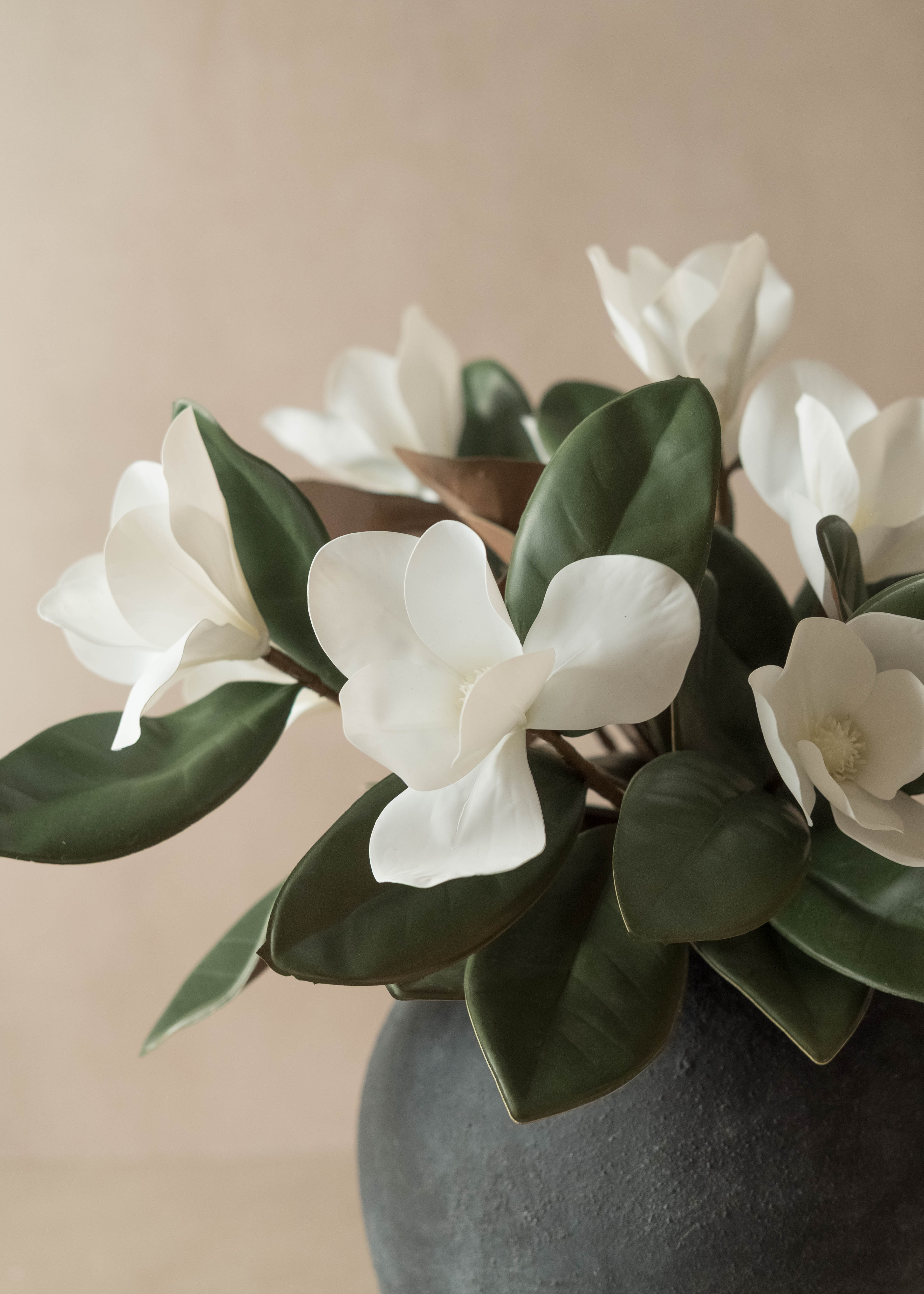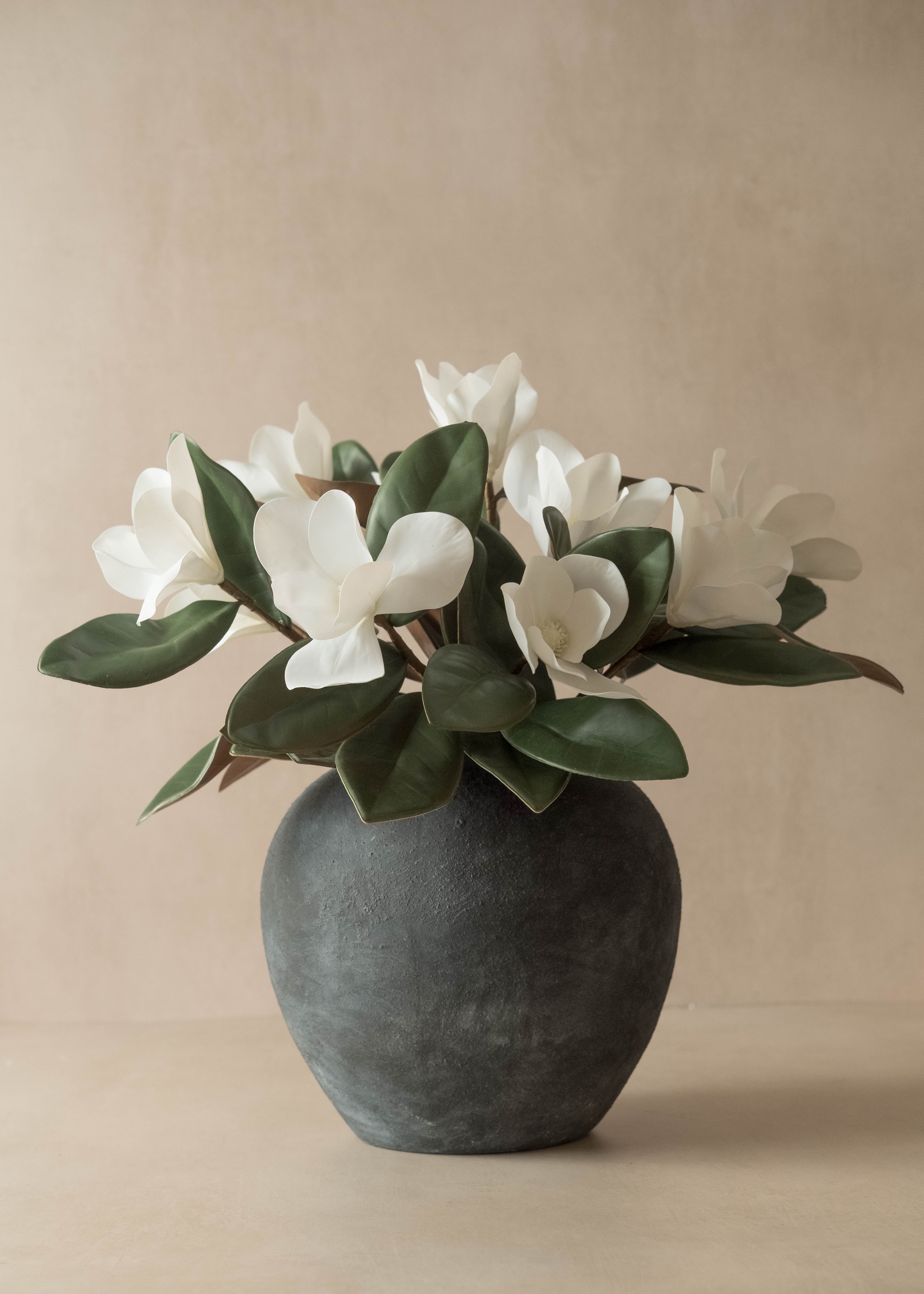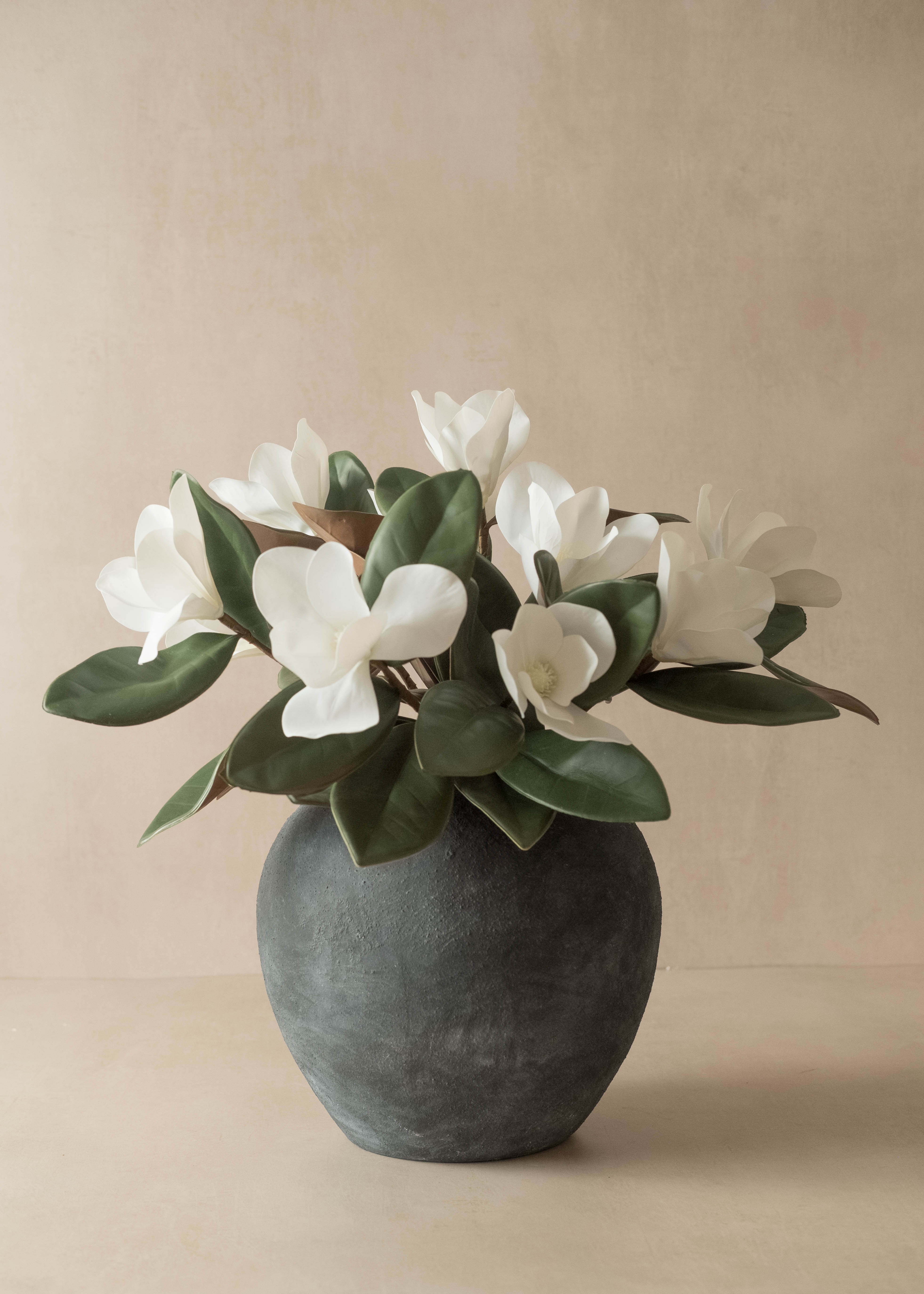 The perfect pairing, 5 of our Faux Magnolia stems and the Charcoal Grey Kelby Vase.