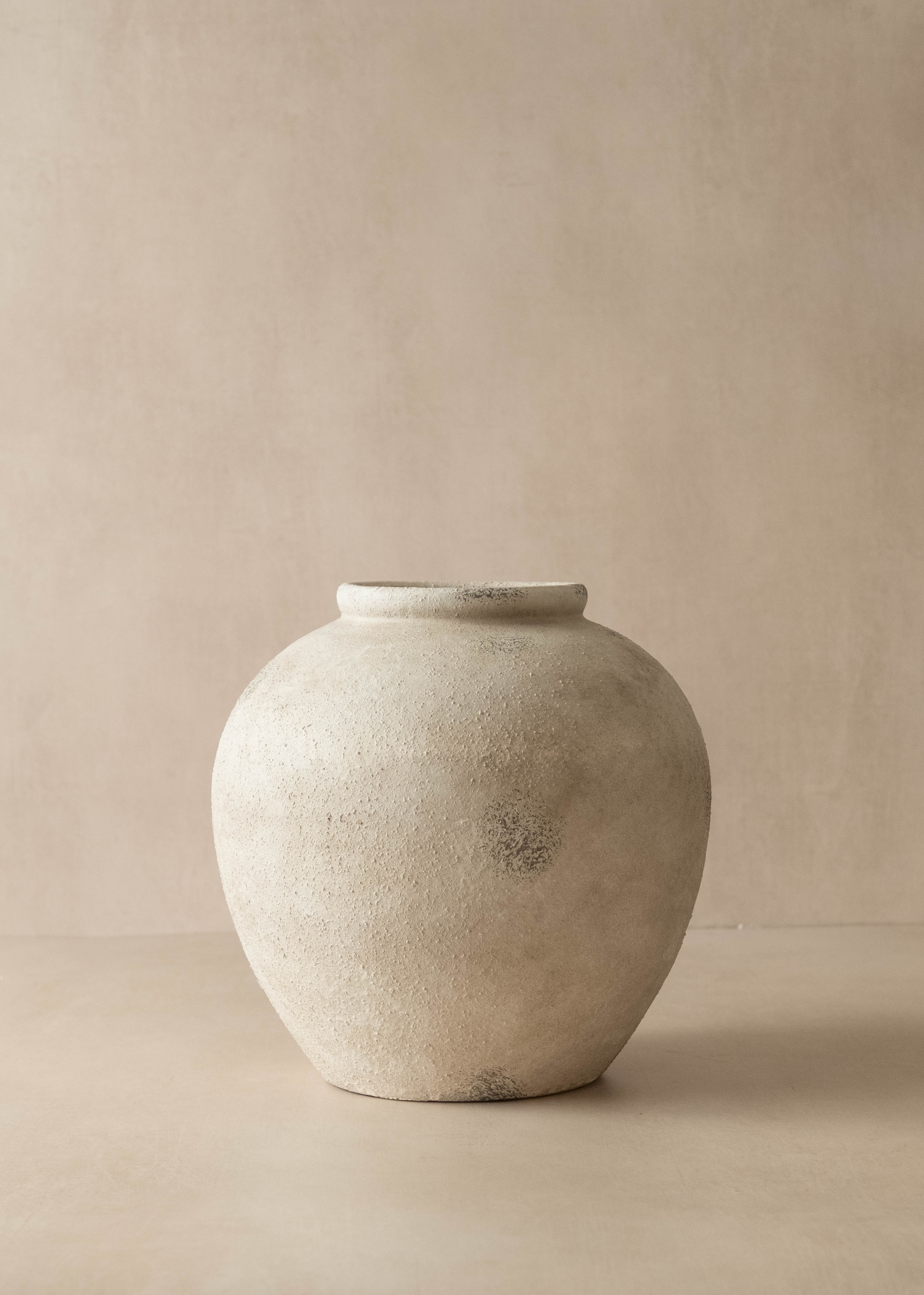 The Kelby Antique Limestone Vase brings understated elegance to any interior. Crafted from limestone coloured ceramic with a rough mottle surface a compact opening, this piece is ideally suited for displaying faux flowers and dried arrangements.