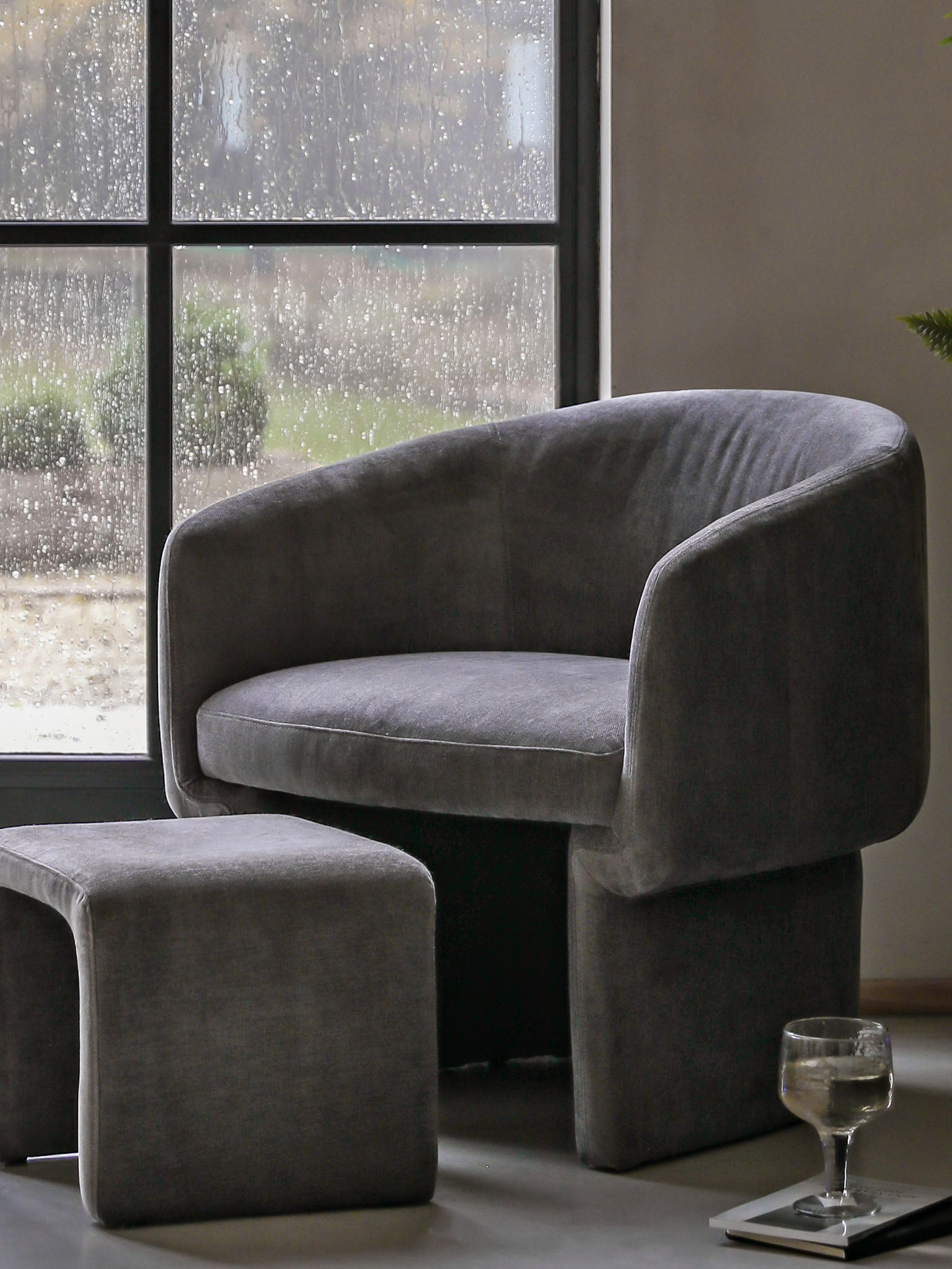 Aslan Armchair in anthracite, retro design, smooth curved back, vintage influence,