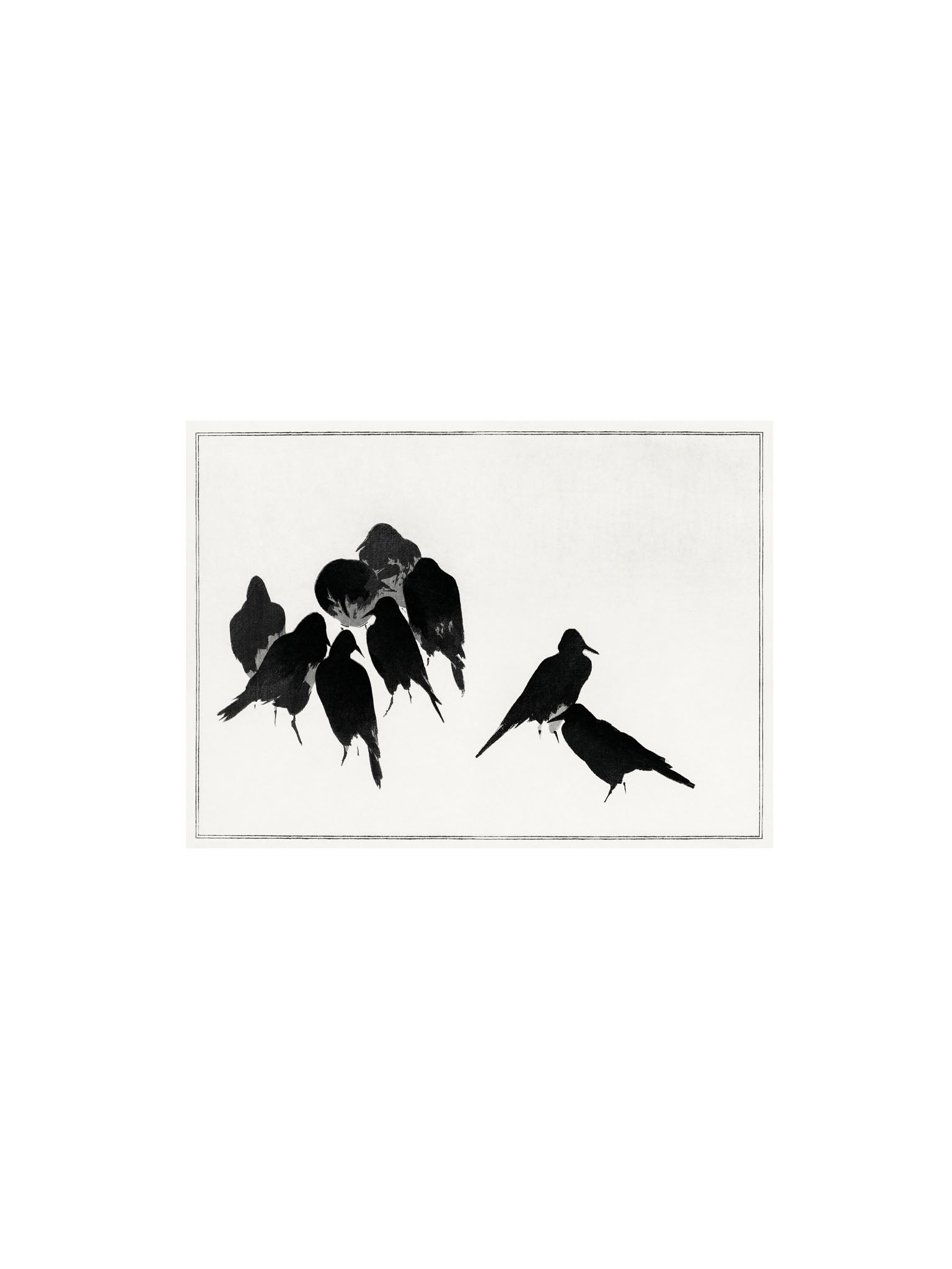 Japense art print of black crows.